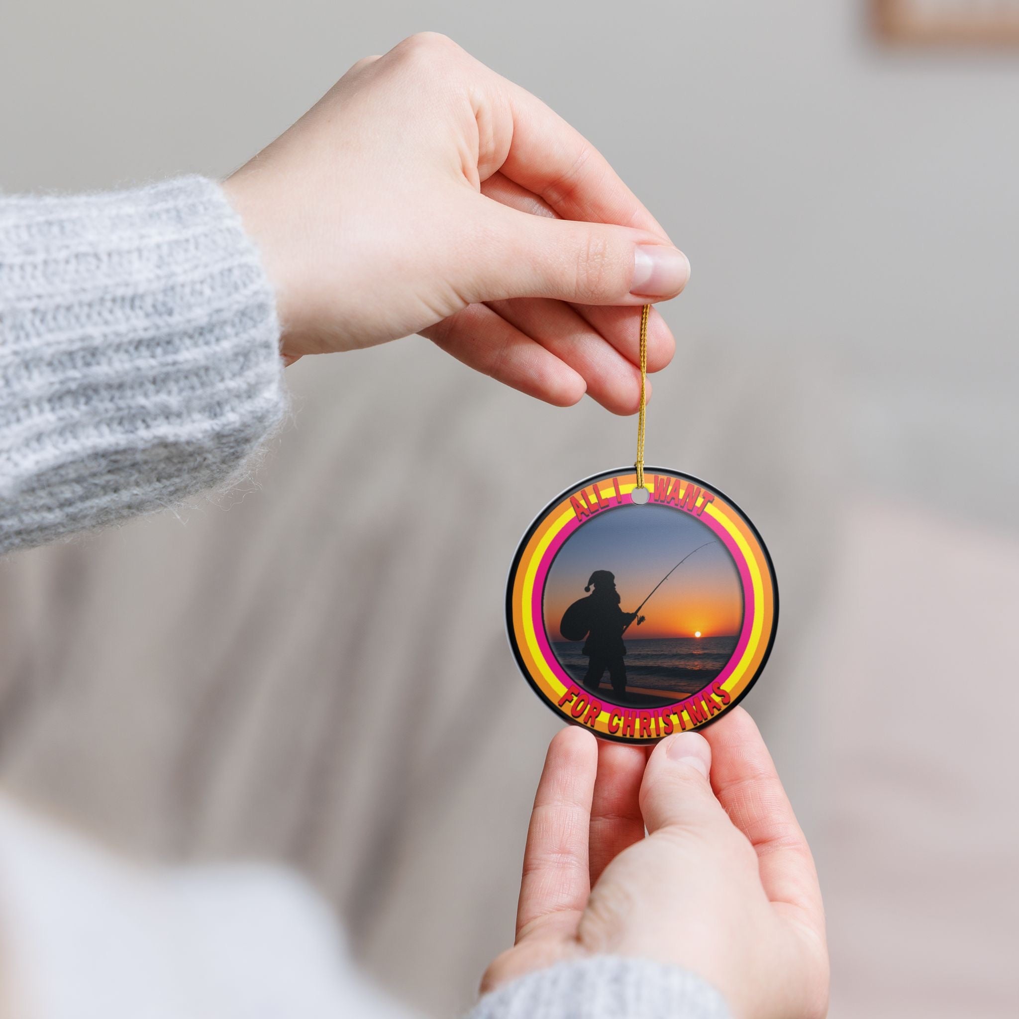 Surf Fishing Santa 3" Ceramic Christmas Ornament Made in the USA Ships From The USA