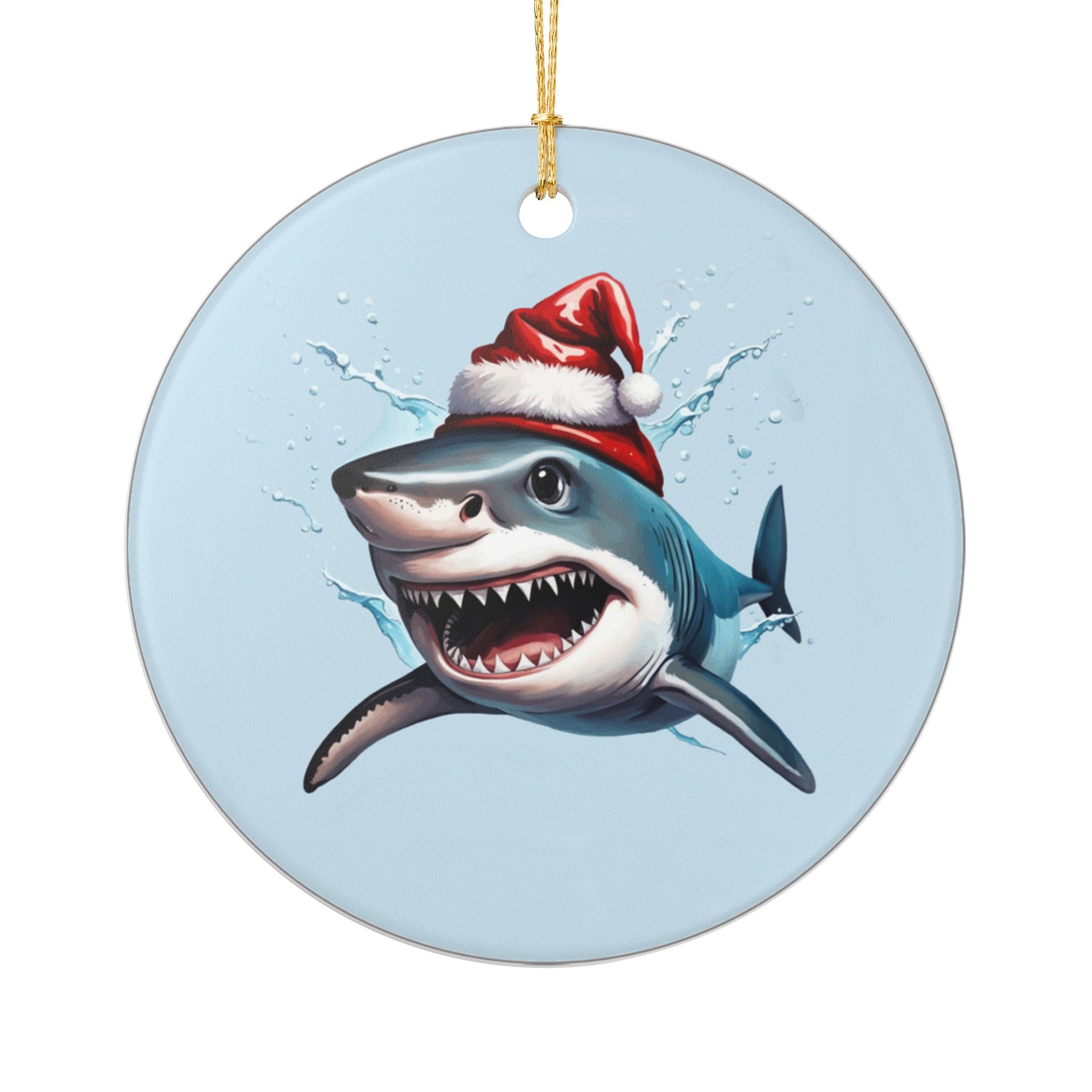 Great White Shark Santa Hat 3" Ceramic Christmas Ornament Made In The USA Ships From The USA