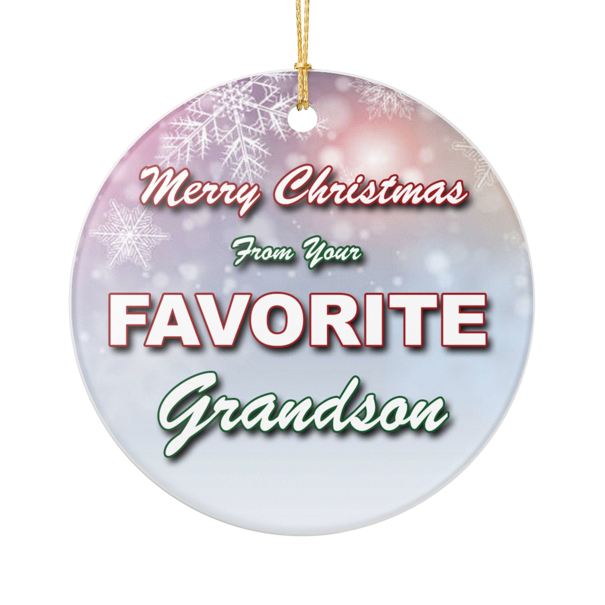 Funny Favorite Grandson 3" Ceramic Christmas Ornament Made In The USA Ships From The USA