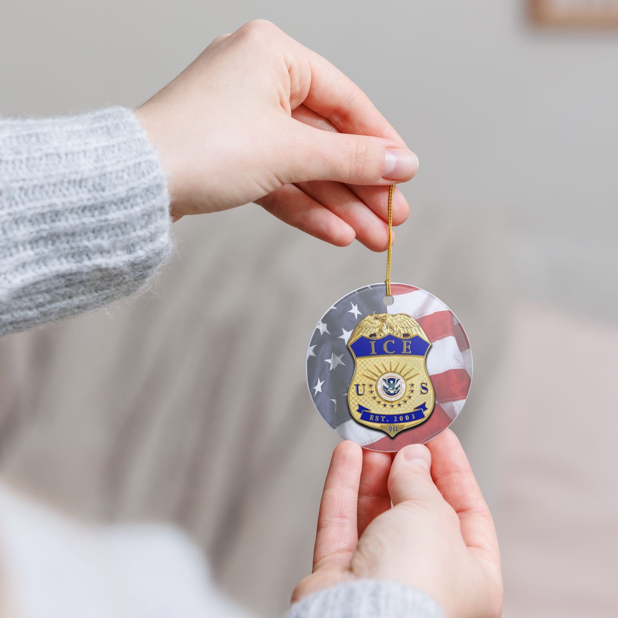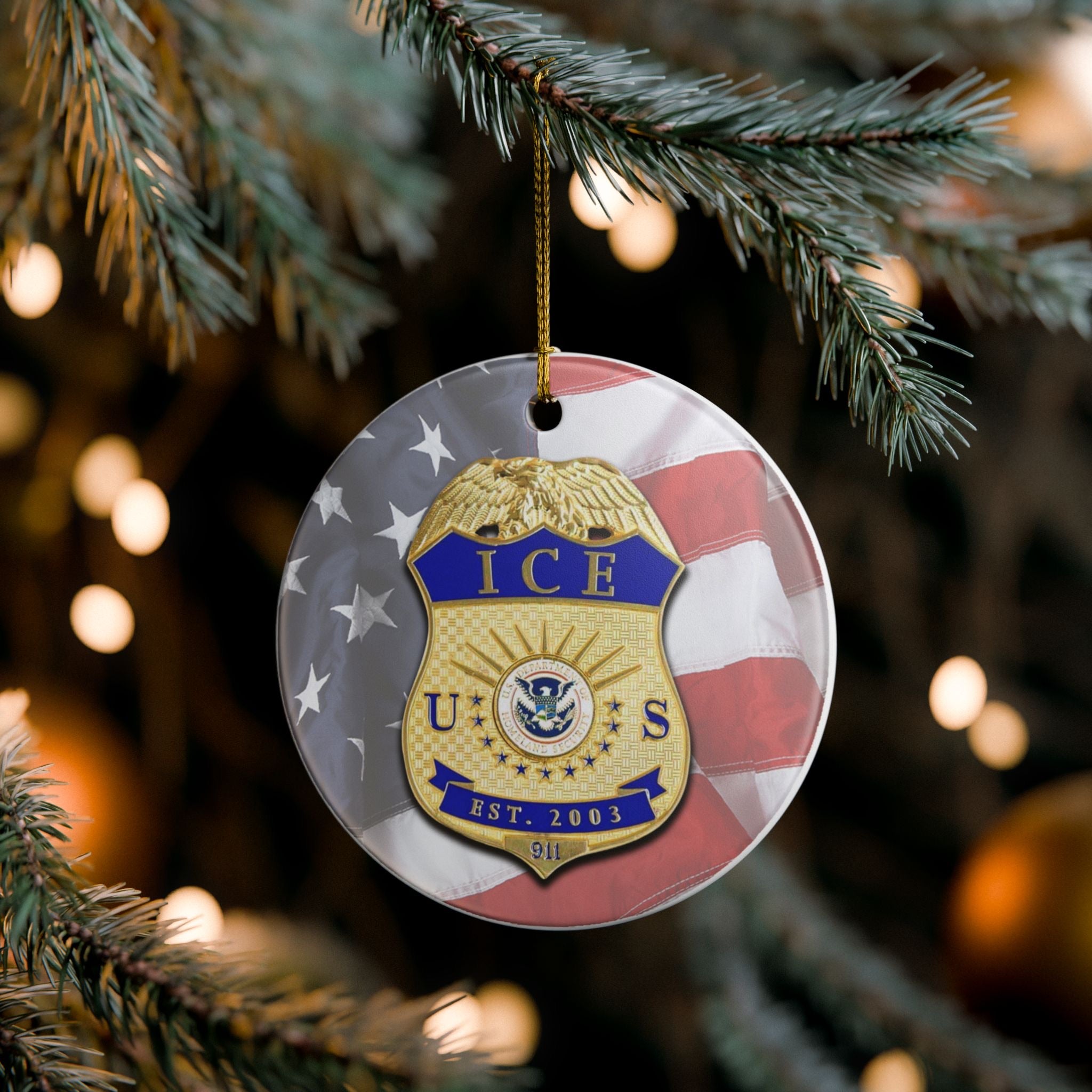 CBP ICE Immigrations and Customs Enforcement 3" Ceramic Single Sided Christmas Ornament Made In The USA Ships From The USA