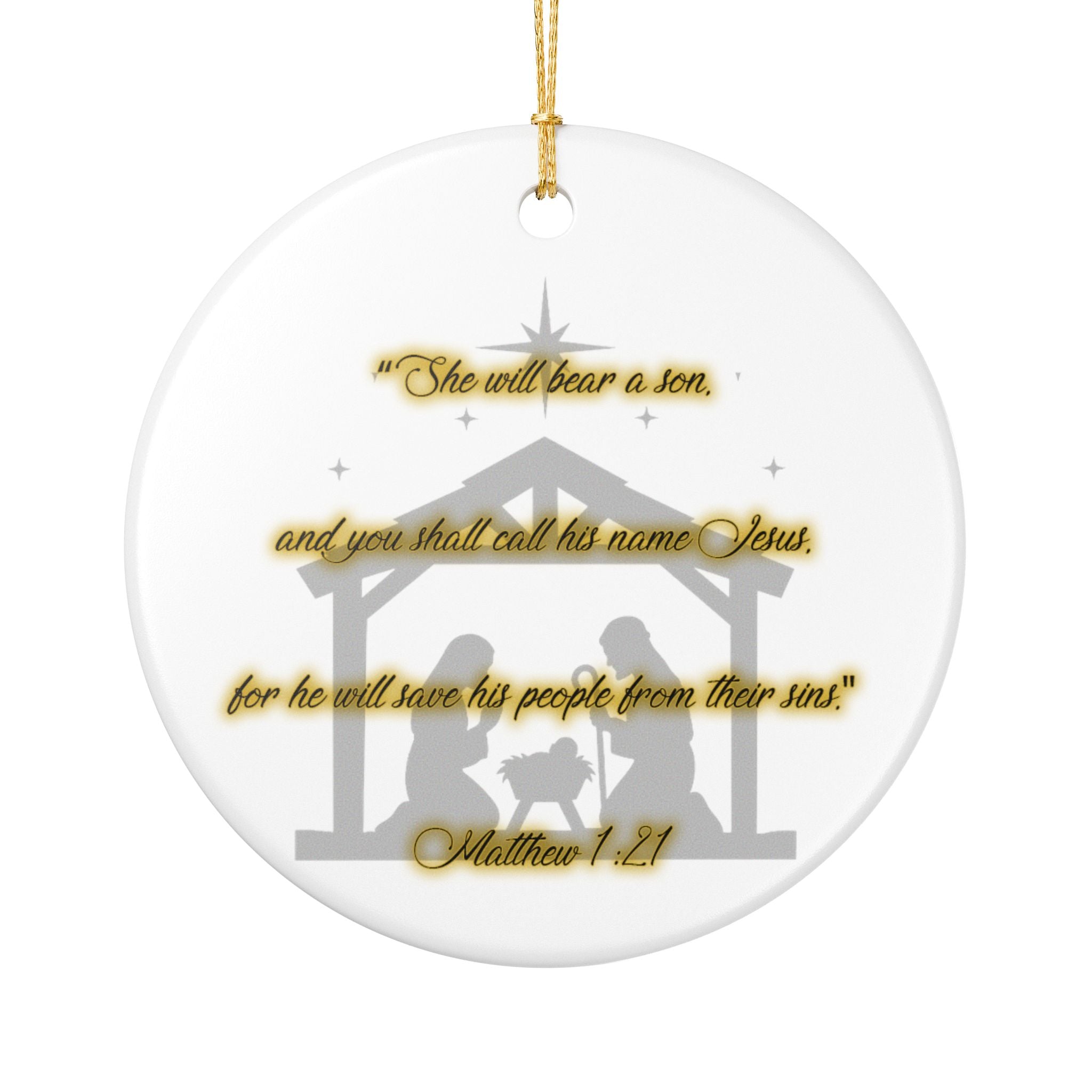 Bible Verse Matthew 1:21 3" Single Sided Ceramic Christmas Ornament Ships From The USA Made In The USA