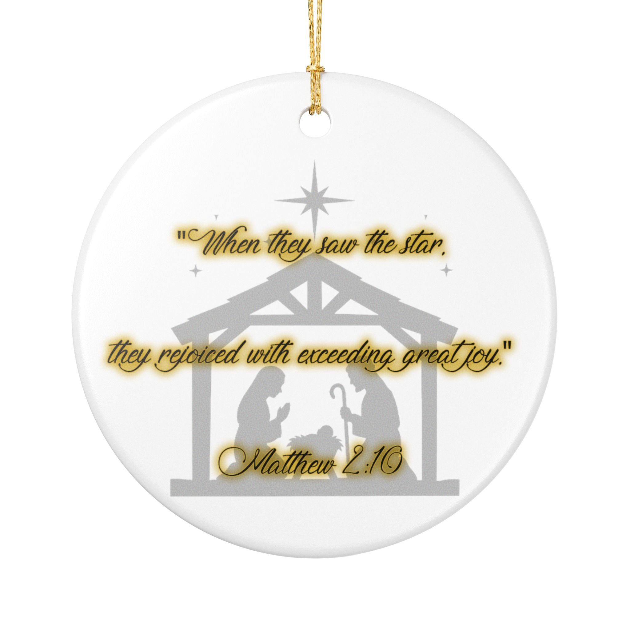 Bible Verse Matthew 2:10 3" Single Sided Ceramic Christmas Ornament Ships From The USA Made In The USA