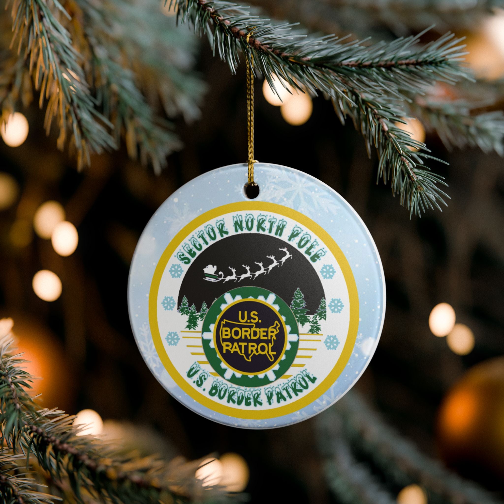 NORTH POLE SECTOR BORDER PATROL BPA 3" CERAMIC CHRISTMAS ORNAMENT MADE IN THE USA SHIPS FROM USA